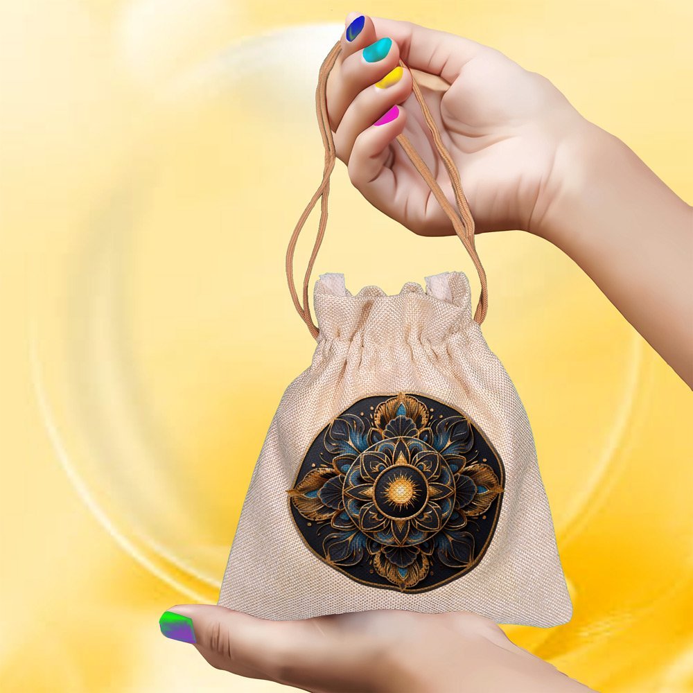 Eco-friendly Natural Jute Potli Bag with a stunning, digitally printed design using DTF technology, created by differently-abled artists. The drawstring closure keeps your essentials secure, while the bag’s compact, stylish design adds a unique touch to any outfit. Crafted with care by young artisans, this bag is both sustainable and meaningful.