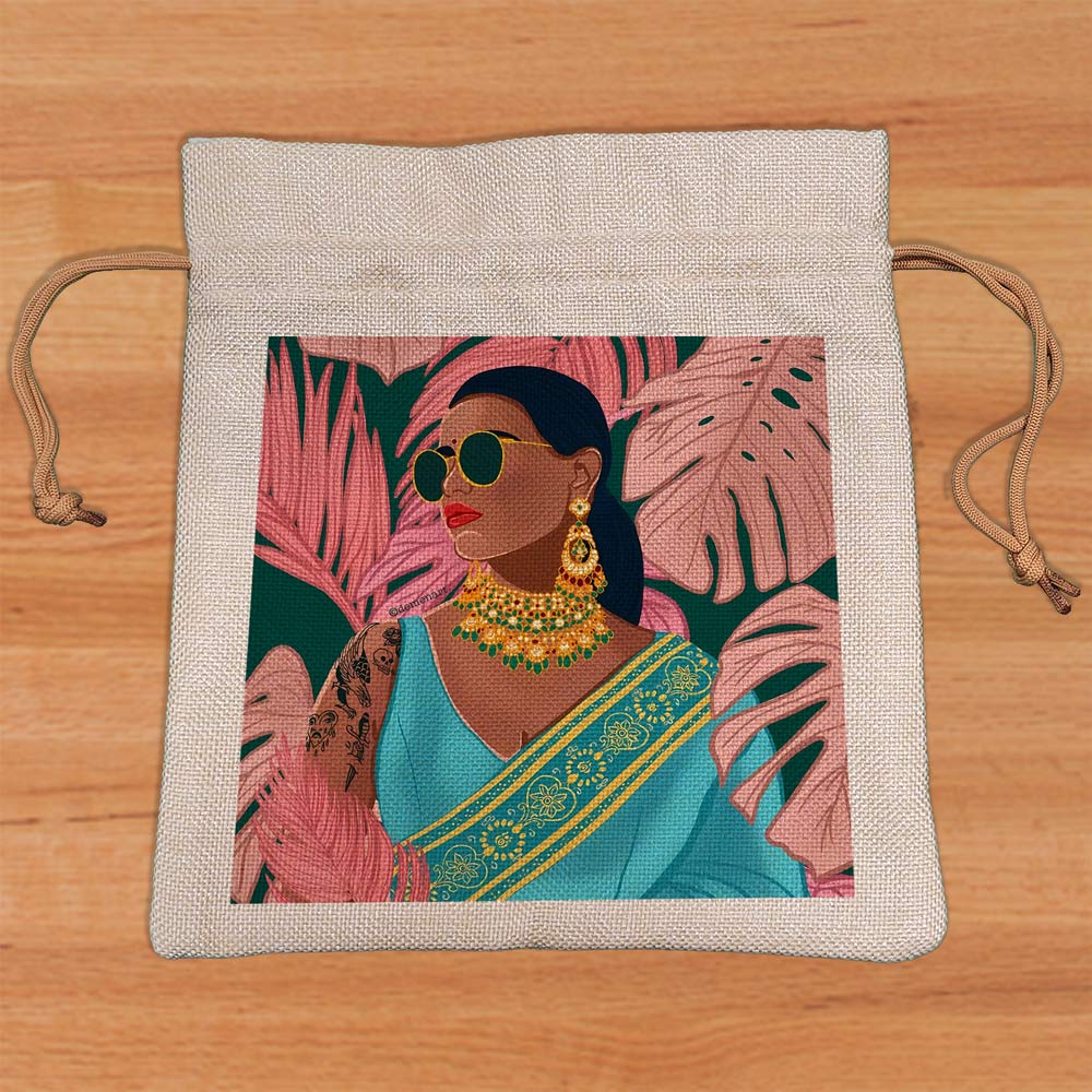 Eco-friendly Natural Jute Potli Bag with a stunning, digitally printed design using DTF technology, created by differently-abled artists. The drawstring closure keeps your essentials secure, while the bag’s compact, stylish design adds a unique touch to any outfit. Crafted with care by young artisans, this bag is both sustainable and meaningful.