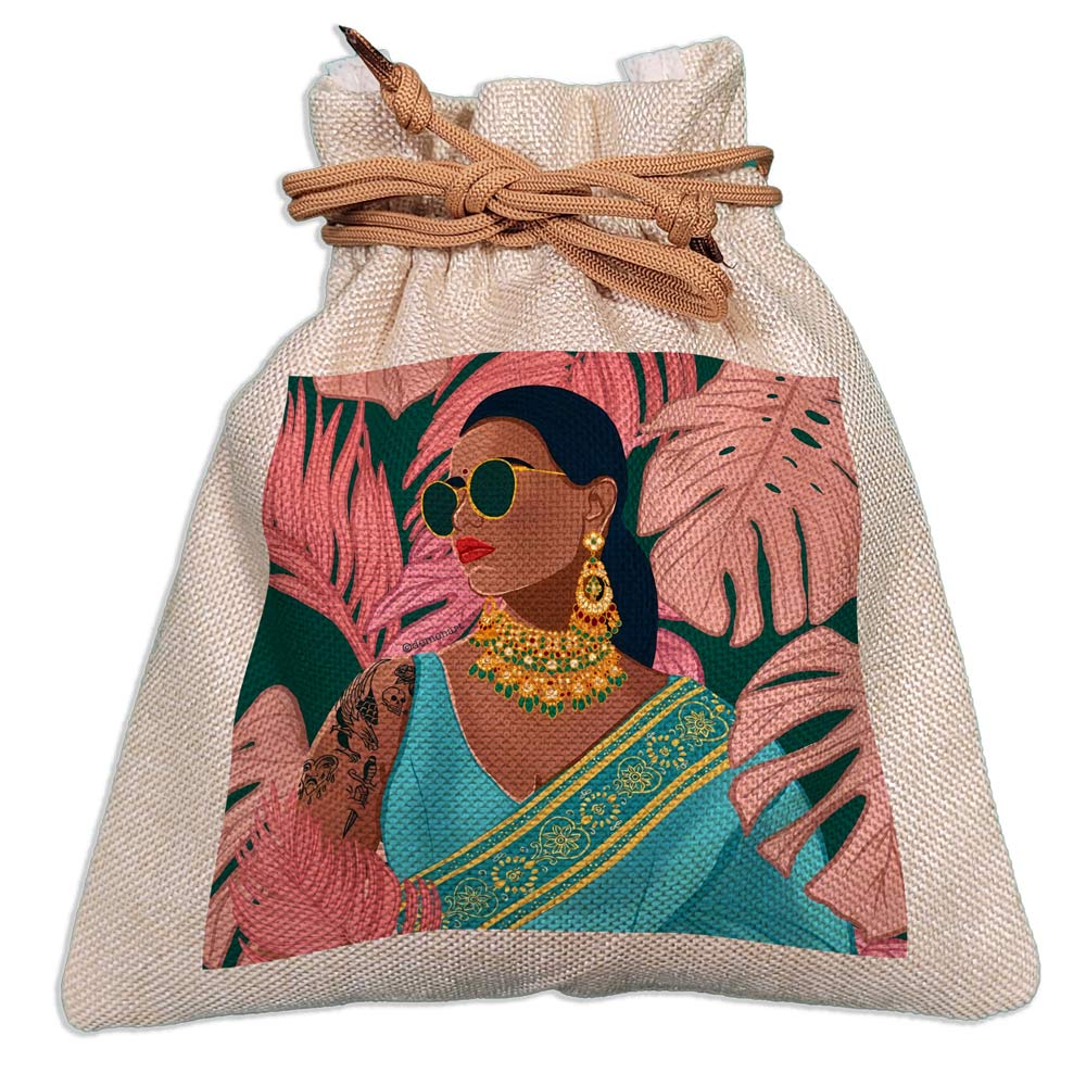 • Durable and Sustainable Material: Made from natural, biodegradable jute, this potli is both durable and eco-friendly, ideal for everyday use or as a special accessory for festive occasions.