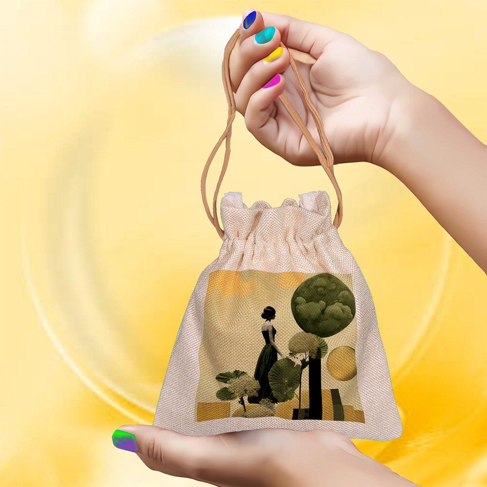 Add a touch of sustainable fashion to your collection with this beautiful, eco-friendly Natural Jute Potli Bag. Made from 100% natural jute fabric, this bag is not only environmentally responsible but also incredibly stylish. It features a stunning, digitally printed design using high-quality DTF (Direct-to-Film) printing technology, making the artwork vibrant and long-lasting. Each design is an exclusive creation by differently-abled artists, ensuring you carry a piece that is as meaningful as it is beautiful.