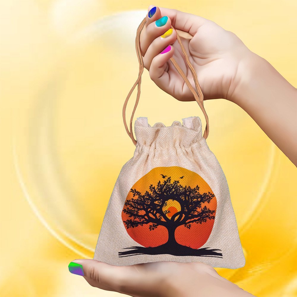 Eco-friendly Natural Jute Potli Bag with a stunning, digitally printed design using DTF technology, created by differently-abled artists. The drawstring closure keeps your essentials secure, while the bag’s compact, stylish design adds a unique touch to any outfit. Crafted with care by young artisans, this bag is both sustainable and meaningful.