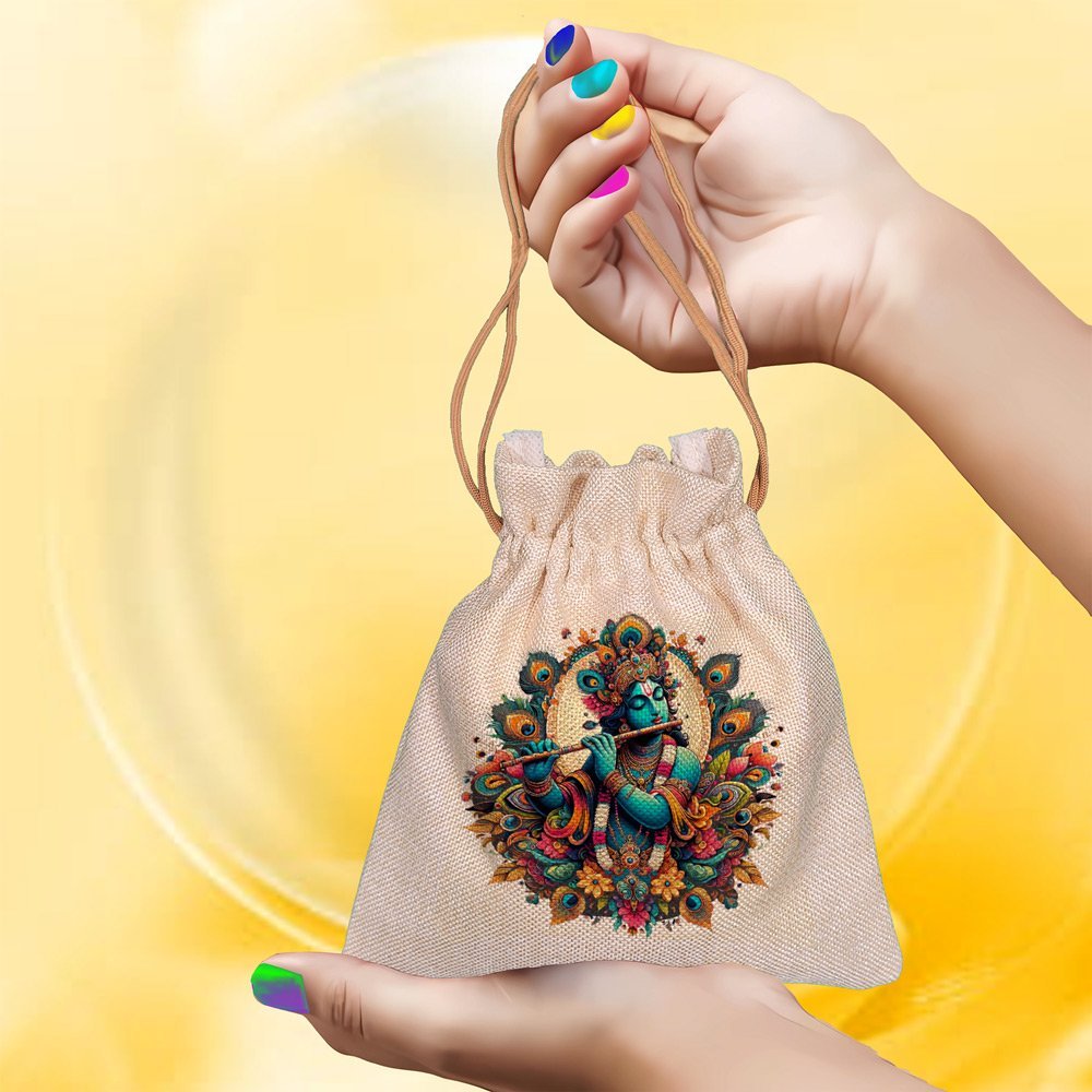 Eco-friendly Natural Jute Potli Bag with a stunning, digitally printed design using DTF technology, created by differently-abled artists. The drawstring closure keeps your essentials secure, while the bag’s compact, stylish design adds a unique touch to any outfit. Crafted with care by young artisans, this bag is both sustainable and meaningful.