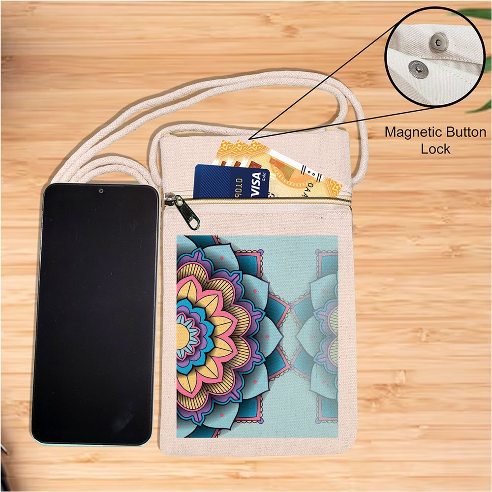 Buy Online EqualLife – 100% Recycled Cotton Canvas mobile phone sling bag – Design-20 – EL8220200