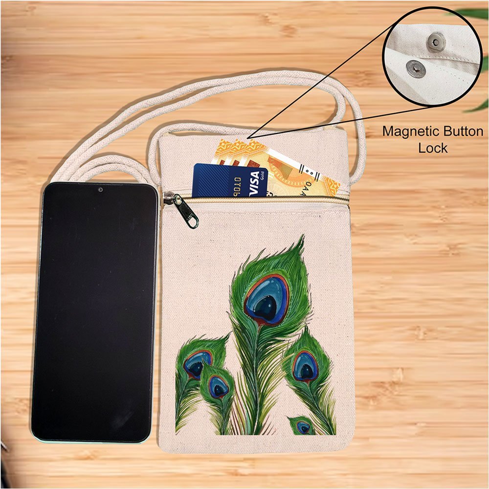 This sleek mobile sling bag is designed to keep your smartphone and daily essentials secure and within easy reach. With dimensions of 20 cm x 12 cm x 1 cm, it fits any smartphone comfortably. The main pocket, lined with a scratch-resistant inner layer, ensures your phone stays protected, while a magnetic button lock keeps it secure. A front pocket with a zipper is perfect for carrying cash, cards, keys, and other small items. Made from tough, durable recycled cotton canvas, this bag is built to last. Plus, the stunning printed designs make this sling bag a stylish and practical choice for any occasion.