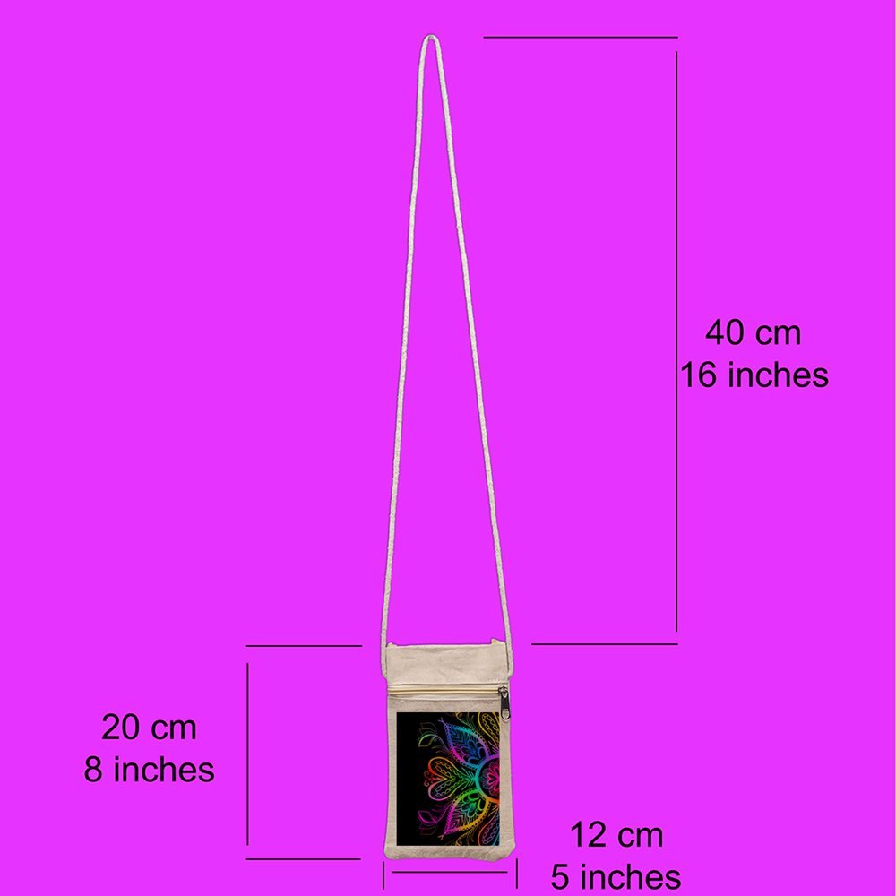 Made from durable, 100% recycled cotton canvas (450+ GSM), this mobile sling bag is designed for your everyday essentials. Featuring an original digital artwork by differently-perfect artist Dev Sankalp, the design is printed with high-definition DTF technology for vibrant, lasting colors. Eco-conscious and machine washable, this bag is built to last and be reused time and again, making it both stylish and sustainable.