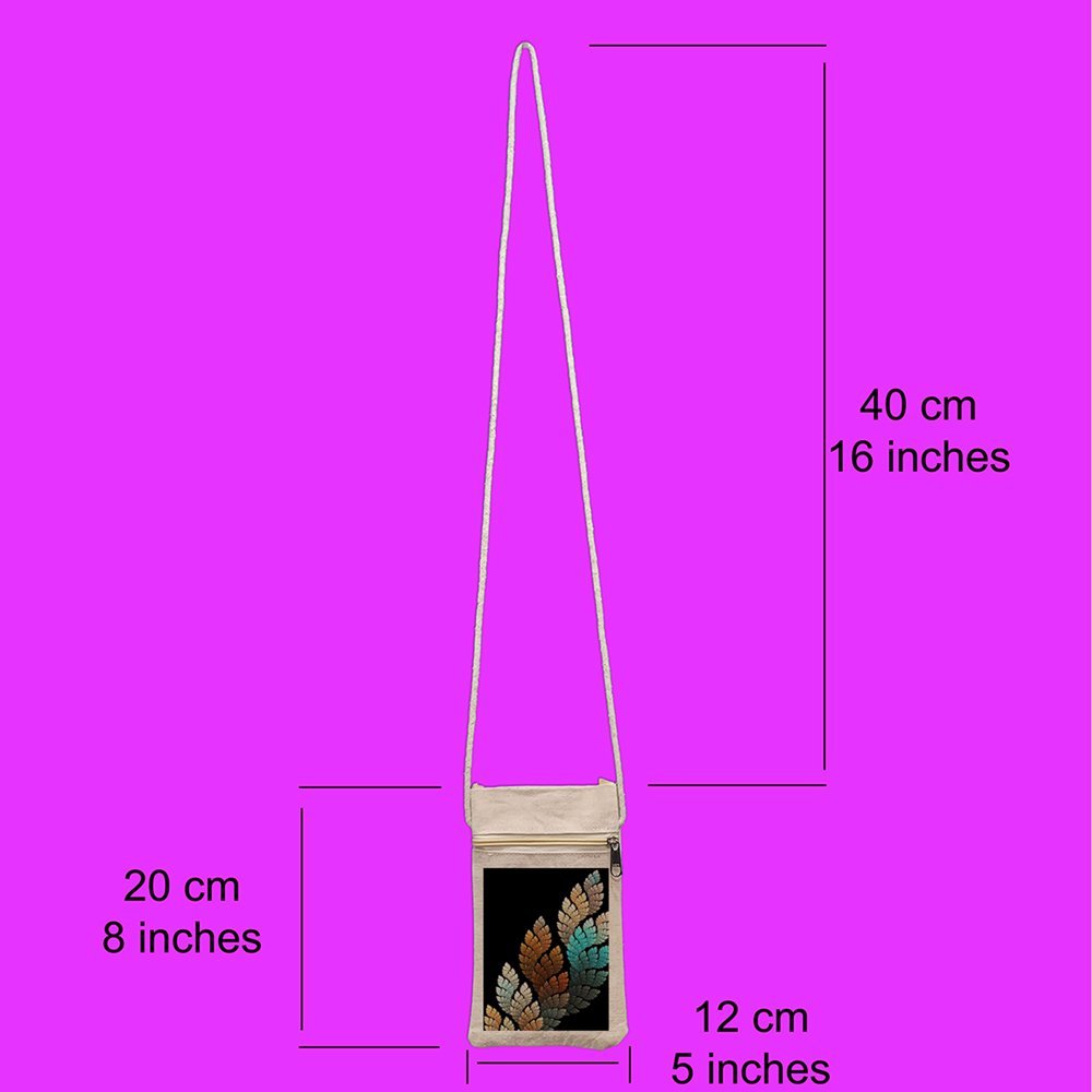 This sleek mobile sling bag is designed to keep your smartphone and daily essentials secure and within easy reach. With dimensions of 20 cm x 12 cm x 1 cm, it fits any smartphone comfortably. The main pocket, lined with a scratch-resistant inner layer, ensures your phone stays protected, while a magnetic button lock keeps it secure. A front pocket with a zipper is perfect for carrying cash, cards, keys, and other small items. Made from tough, durable recycled cotton canvas, this bag is built to last. Plus, the stunning printed designs make this sling bag a stylish and practical choice for any occasion.