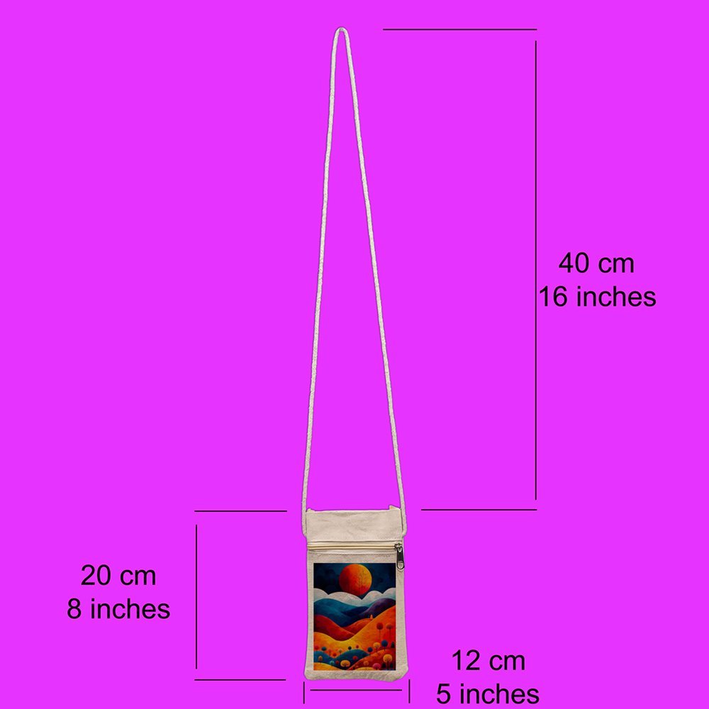 Made from durable, 100% recycled cotton canvas (450+ GSM), this mobile sling bag is designed for your everyday essentials. Featuring an original digital artwork by differently-perfect artist Dev Sankalp, the design is printed with high-definition DTF technology for vibrant, lasting colors. Eco-conscious and machine washable, this bag is built to last and be reused time and again, making it both stylish and sustainable.