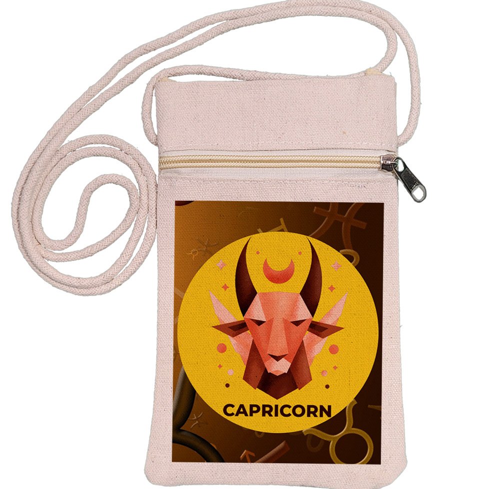 Eco-Friendly Recycled Cotton Canvas Mobile Phone Sling Bag – Design-Zodiac Sign-Capricorn – EL8220247