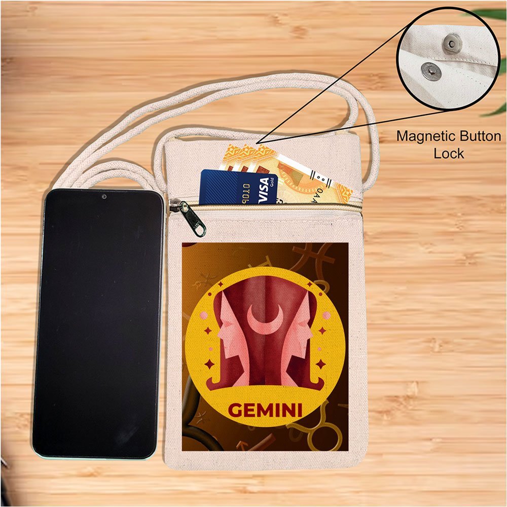 Buy Online EqualLife – 100% Recycled Cotton Canvas mobile phone sling bag – Design-Zodiac Sign-Gemini – EL8220248