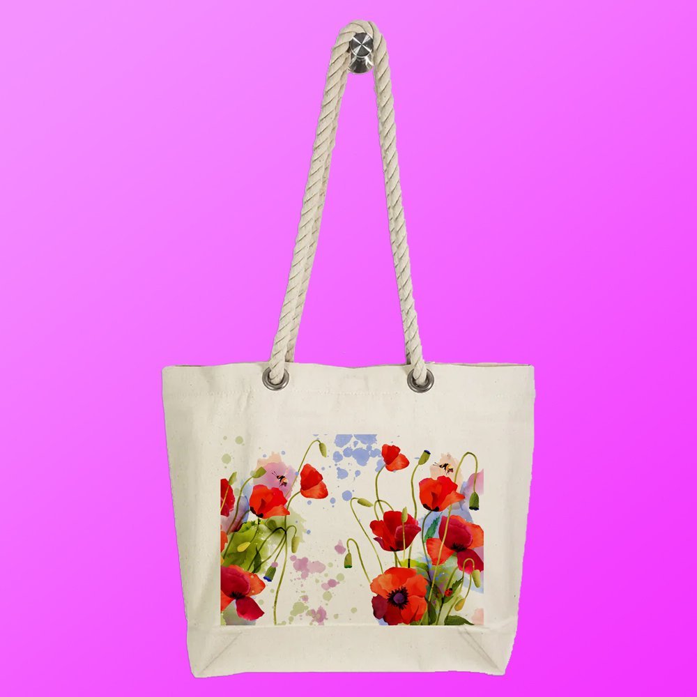 Buy Online Eco-Friendly Recycled Cotton Canvas Tote Bag – Flowers-4 Design-85 – EL8220331