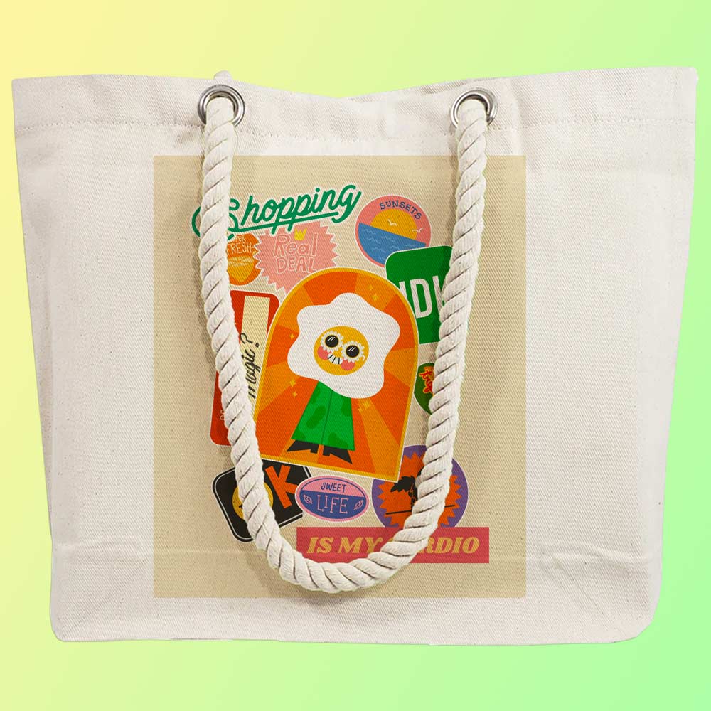 Buy Online EqualLife – Printed 100% Recycled Cotton Canvas Tote Bag – Assorted Funny Stickers Design