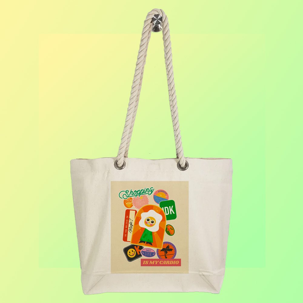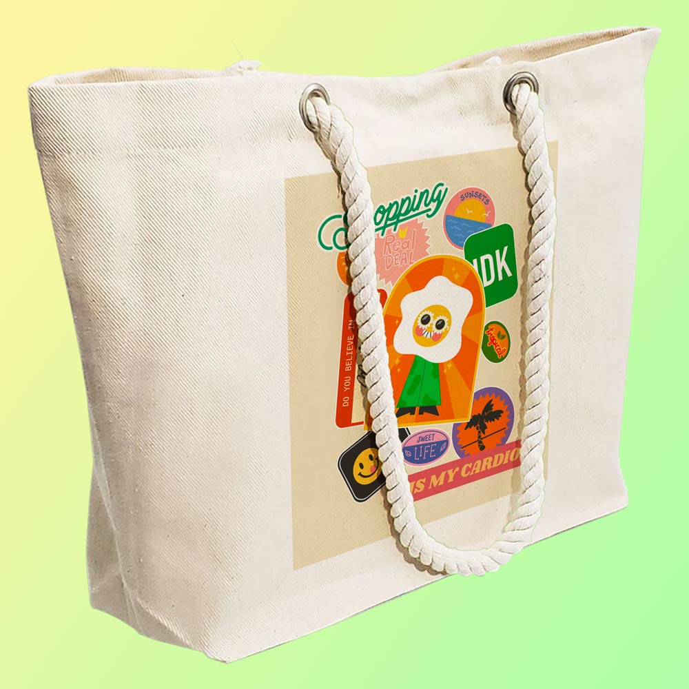 Eco-Friendly Recycled Cotton Canvas Tote Bag – Assorted Funny Stickers Design – EL8220138