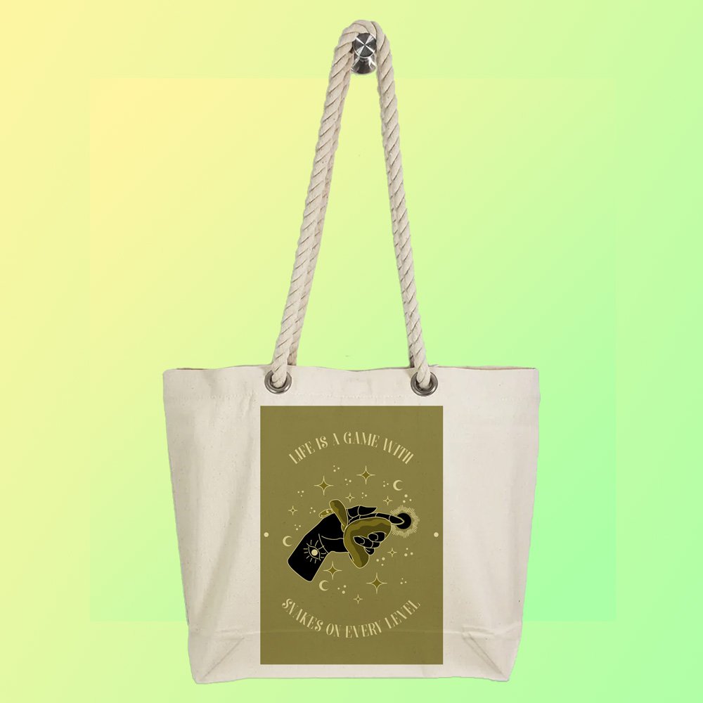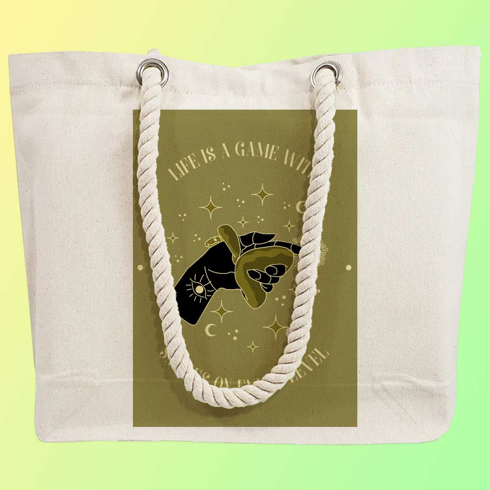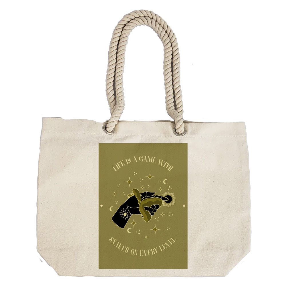 Buy Online EqualLife – Printed 100% Recycled Cotton Canvas Tote Bag – Astrology Snake Hands Wisdom Design
