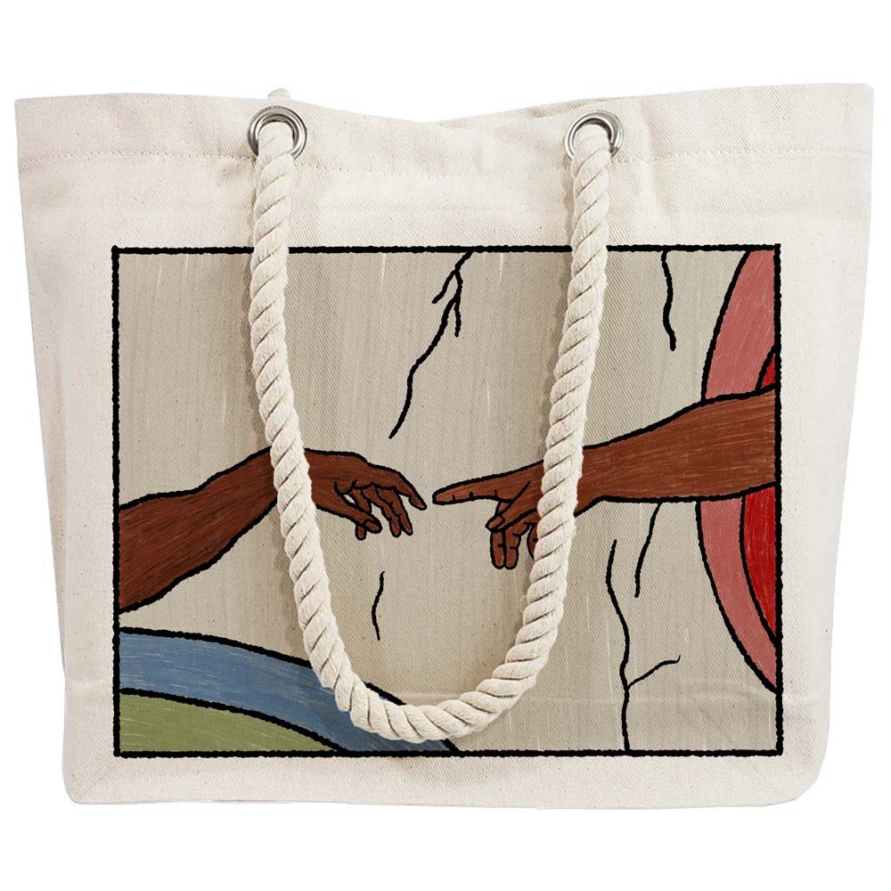This tote bag is perfect for carrying your groceries, books, and anything else you need while on the go. With a large main compartment and an inner pocket, there is plenty of space to store everything you need. The bag has a magnetic lock to prevent spill-outs. The hand-painted design makes it easy to spot your bag from across the room, and the recycled cotton canvas is durable enough to withstand a lot of wear and tear.