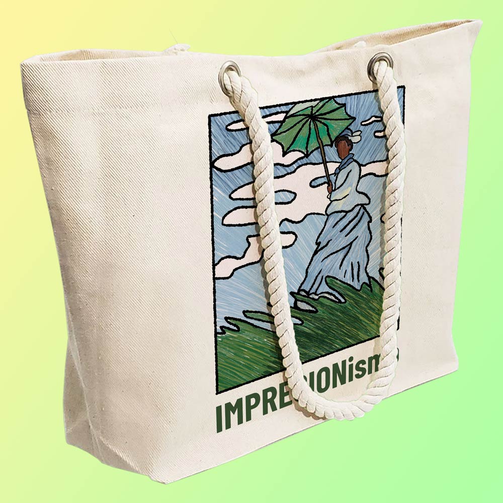 Eco-Friendly Recycled Cotton Canvas Tote Bag – Green Umbrella Victorian Lady Design – EL8220121
