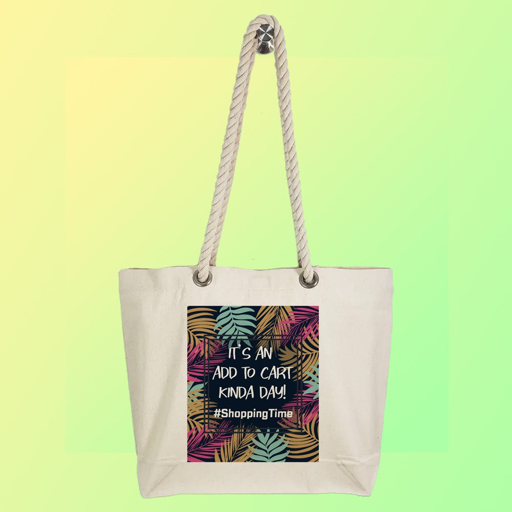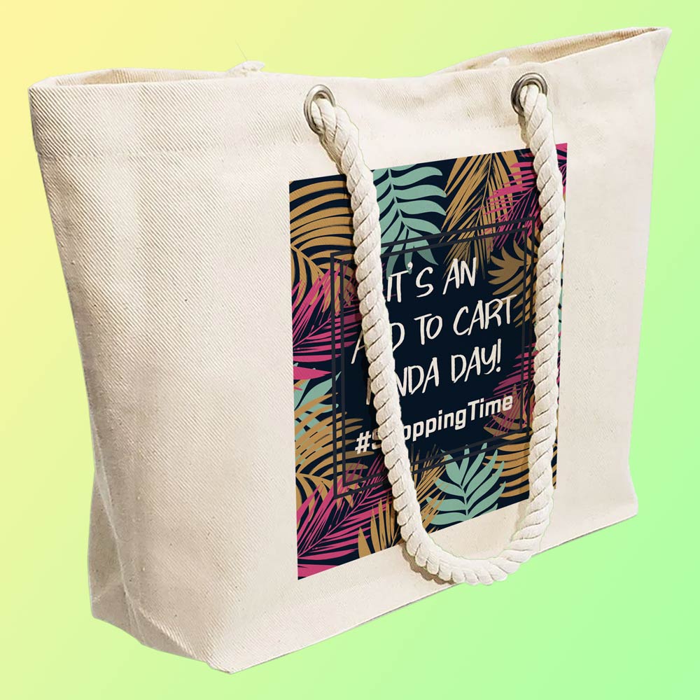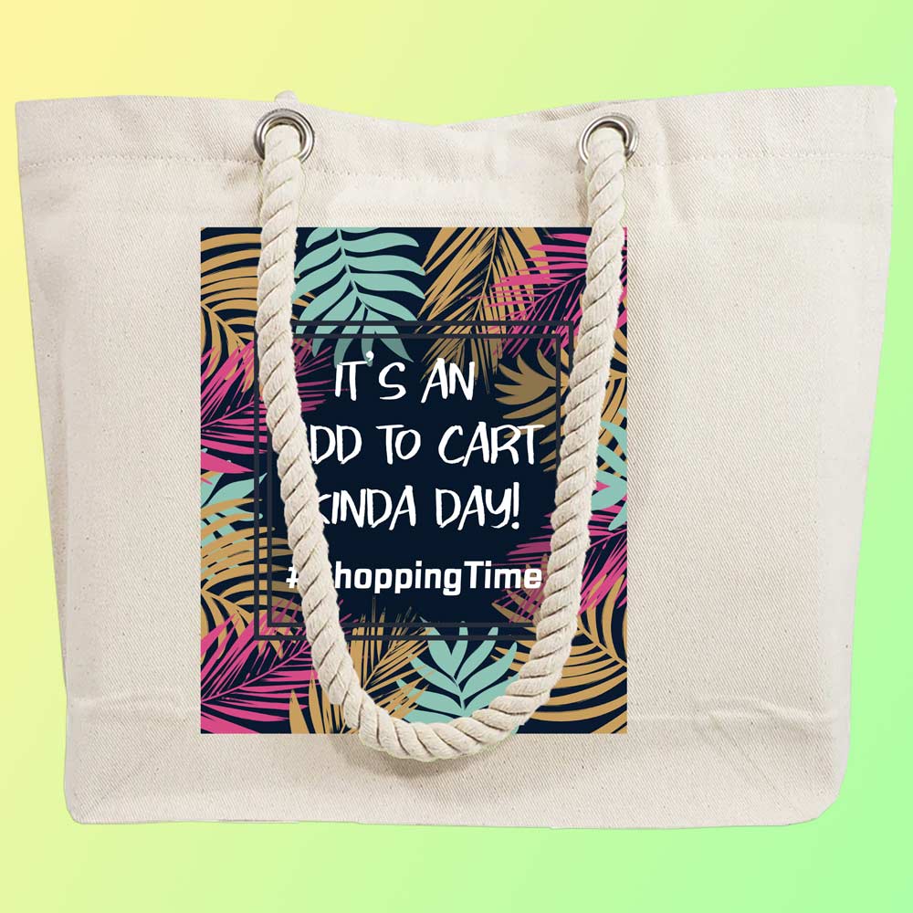 Buy Online EqualLife – Printed 100% Recycled Cotton Canvas Tote Bag – Shopping Time Design
