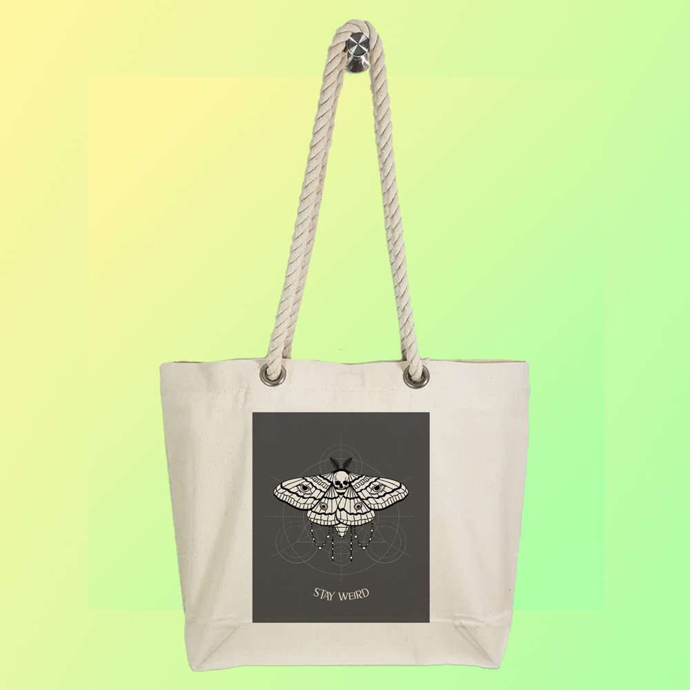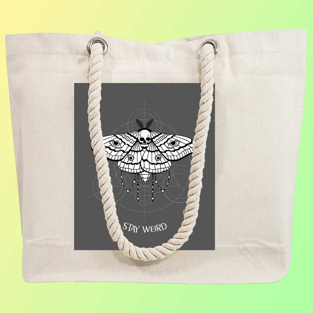 Buy Online EqualLife – Printed 100% Recycled Cotton Canvas Tote Bag – Stay Weird Design