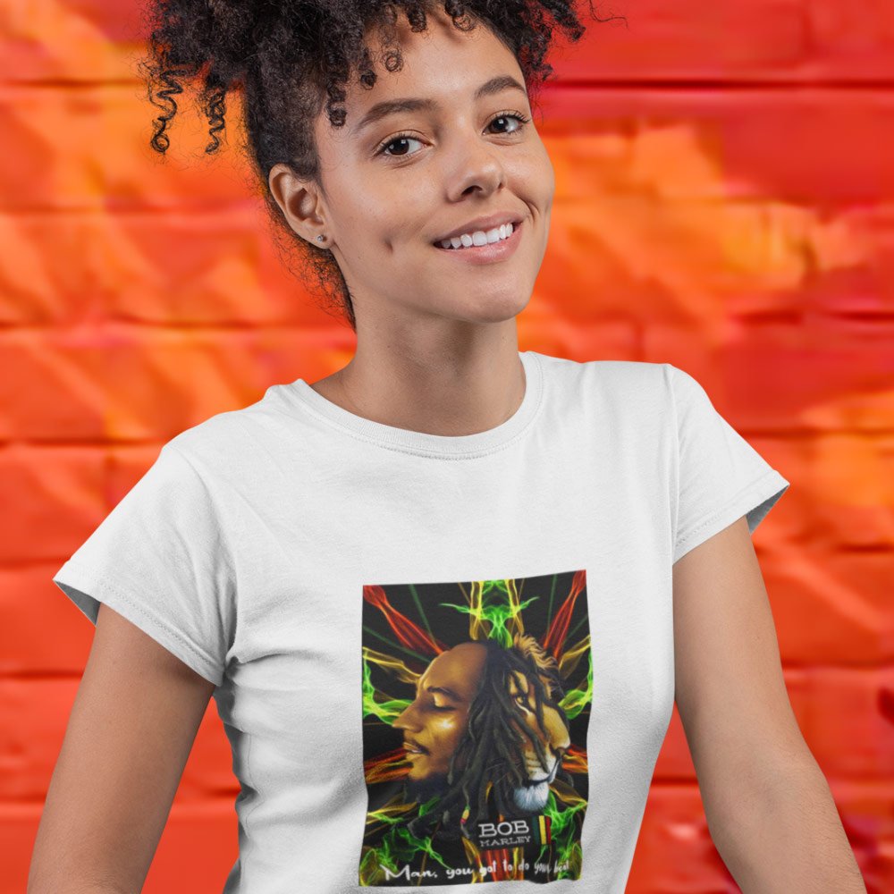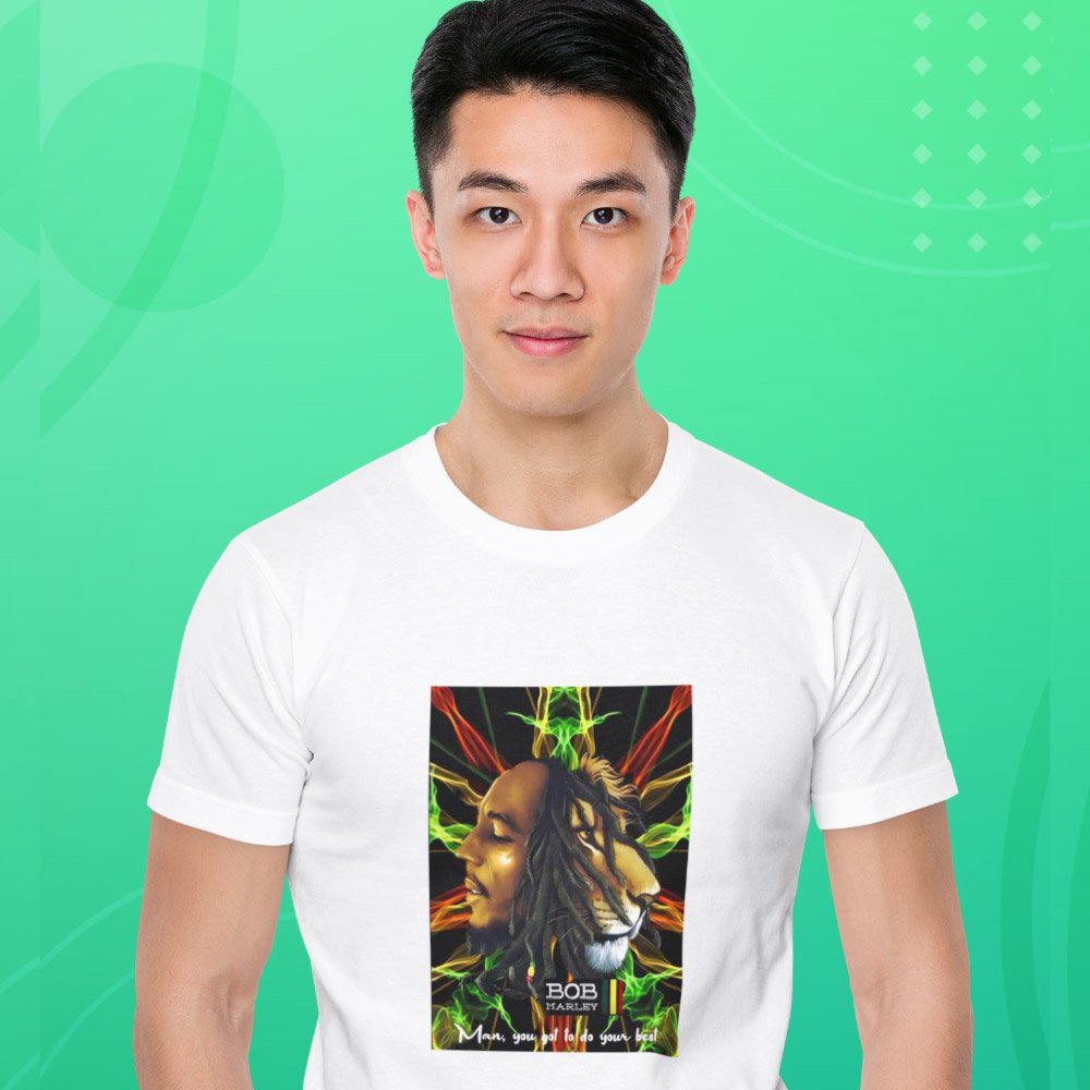 Made from high-quality cotton and bio-washed for maximum comfort, this T-shirt is the perfect addition to any wardrobe.Featuring a striking chest print, this T-shirt pays tribute to the legendary Reggae Music singer, Bob Marley. The intricate design captures the essence of Marley’s music and Rastafarianism, with its bold colors and symbolic elements. Whether you’re a fan of Bob Marley’s music or simply appreciate great art, this T-shirt is sure to turn heads. The T-Shirt has been designed by Devsankalp our brilliant differently-abled artist.