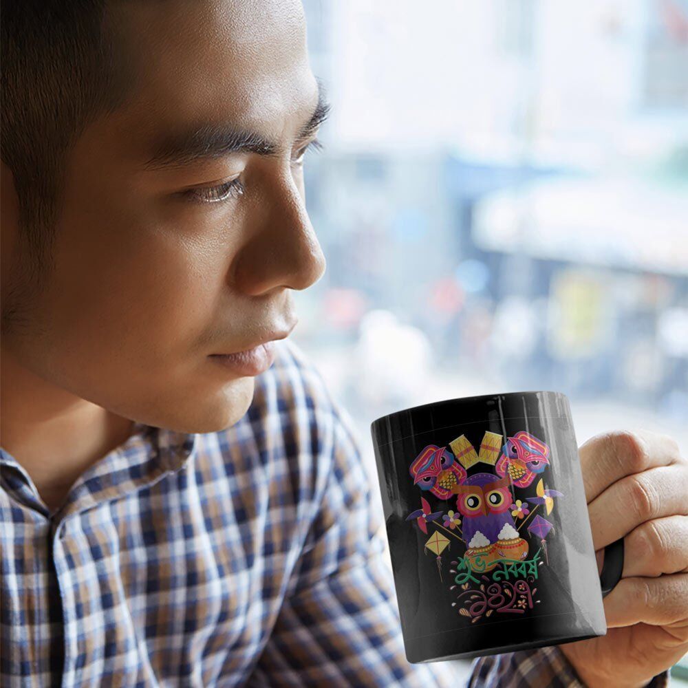 I picked up this mug for Poila Boishakh and it’s pretty cool! The design is festive and the black color is sleek. It feels nice in your hand and the print quality is good. It’s a regular size mug, perfect for your morning chai or coffee. Definitely adds a nice touch to my kitchen.