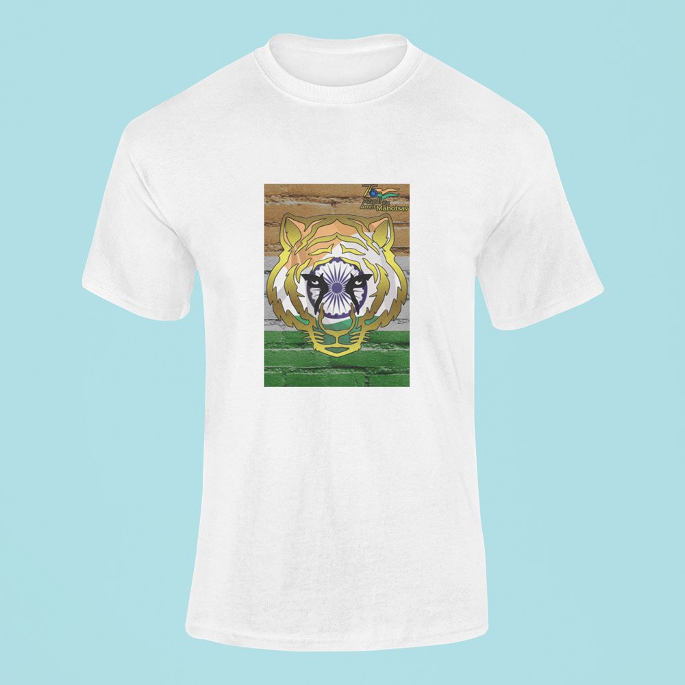 Buy Online India 75th Independence Day Tiger Design Printed T-Shirt by ZingerTees.