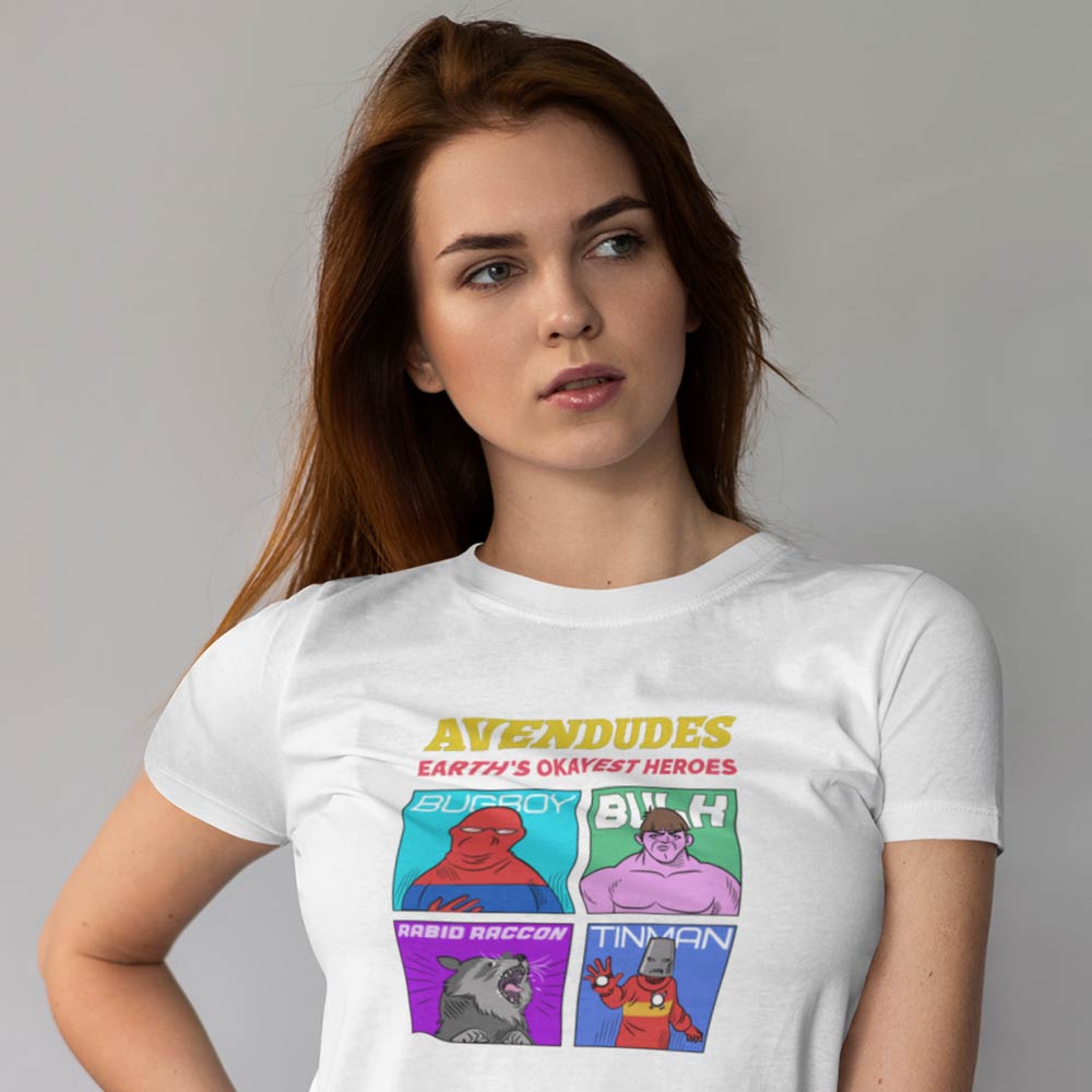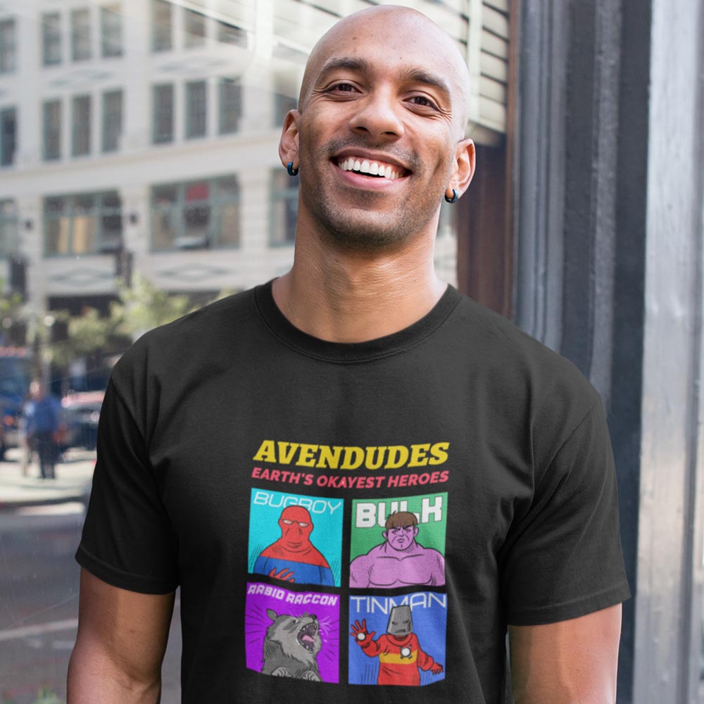 Buy Online Superhero Series – Avendudes – Earth’s Okayest Heros – 1 Design Printed T-Shirt by ZingerTees.