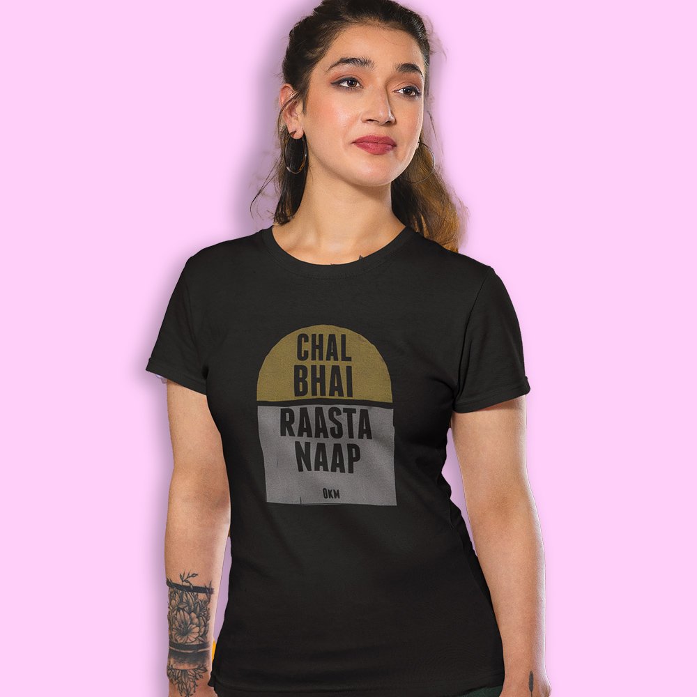 Buy Online Funny Tees – Chal Bhai Raasta Naap Design 4 by ZingerTees